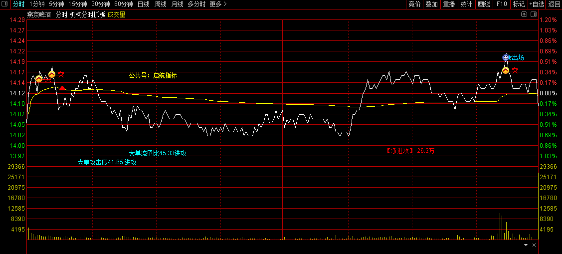 【机构分时抓板密码】主图指标,价格形成N型突破结构,当日换手率达到3%以上可关注!