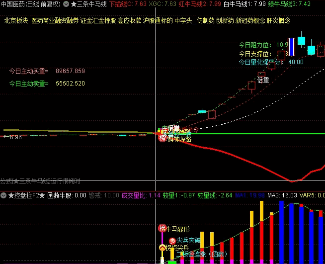 开仓原则:坚持放量K线上穿主图牛马线买!