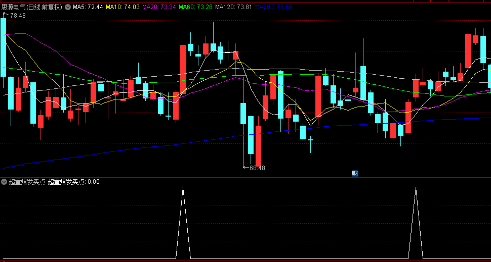该指标在副图显示为脉冲式信号点(60值),适合用于:1)强势股回调后的二次启动捕捉;2)平台突破前的量能异动预警;3)趋势中的加速买点确认。
