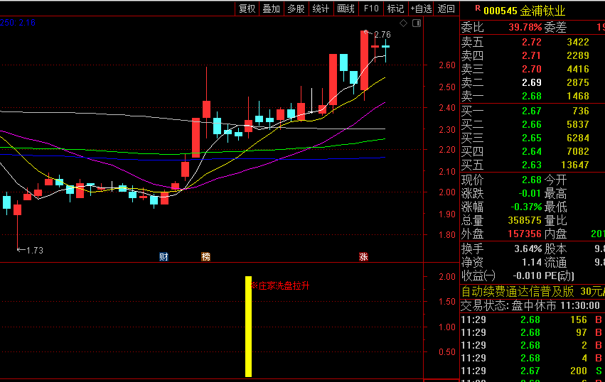 3.主力行为分析:特别针对庄家洗盘阶段的特征信号进行捕捉。