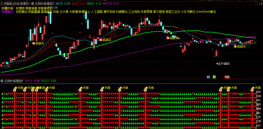 1. 当主图界面在价格低位区域发出买入提示,同时副图指标出现同步确认信号时,往往预示着较佳的入场时机。