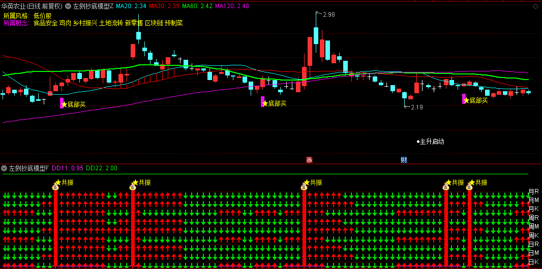 通达信【左侧抄底模型】主图/副图/选股指标, 首次建仓后副图再次共振,可追加仓位