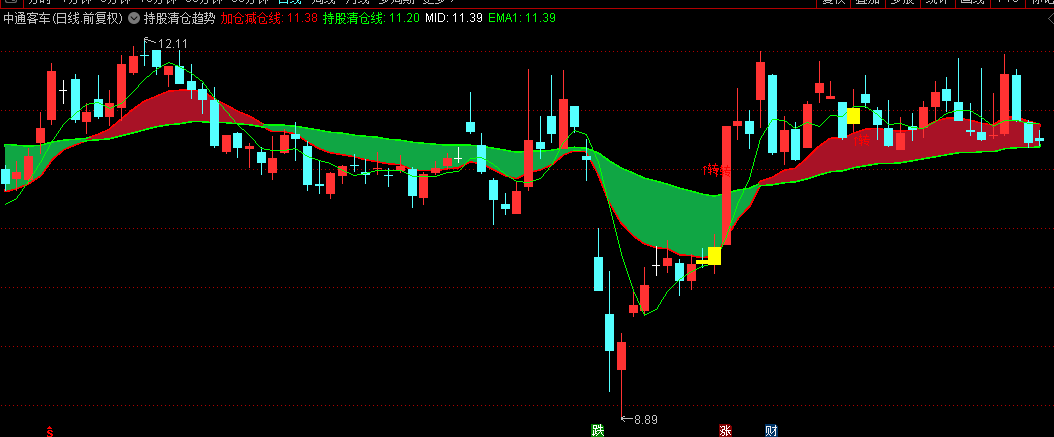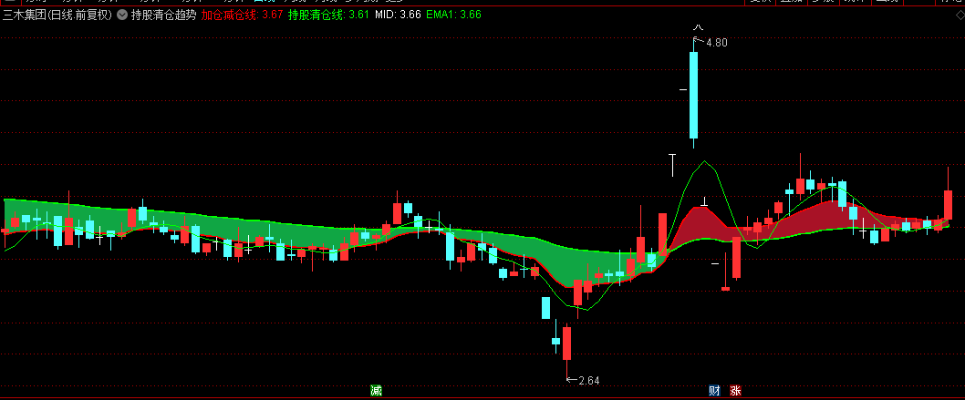 加仓减仓线(红色):12日指数均线,短期趋势指引,上穿持股线或突破压力时提示机会。
