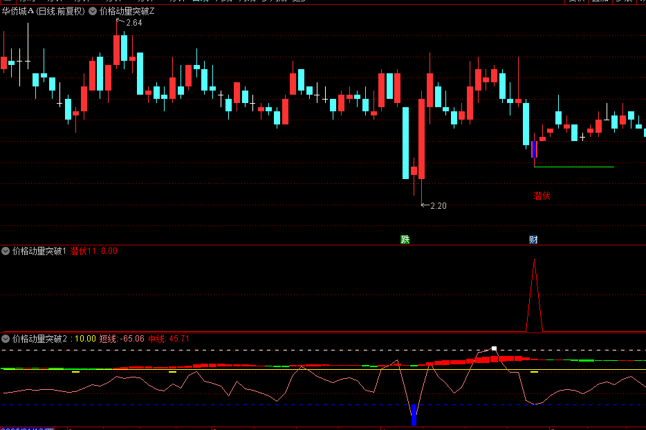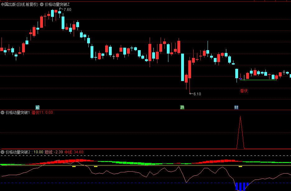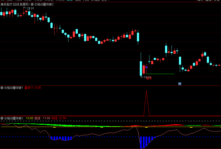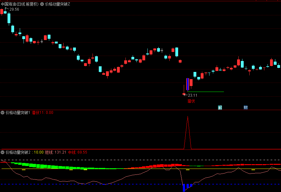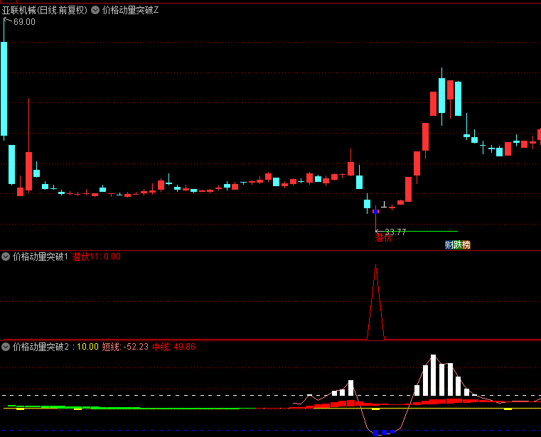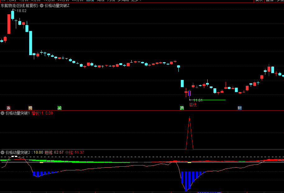 通过双色能量柱直观显示:红色动能柱:中期上升趋势确立;绿色动能柱:短期下降趋势形成。