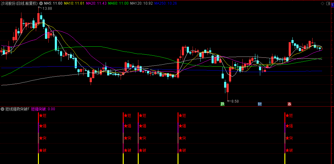 通达信【短线强势突破】副图/选股指标,独创红-品红-橙黄渐变信号柱,强弱一目了然!