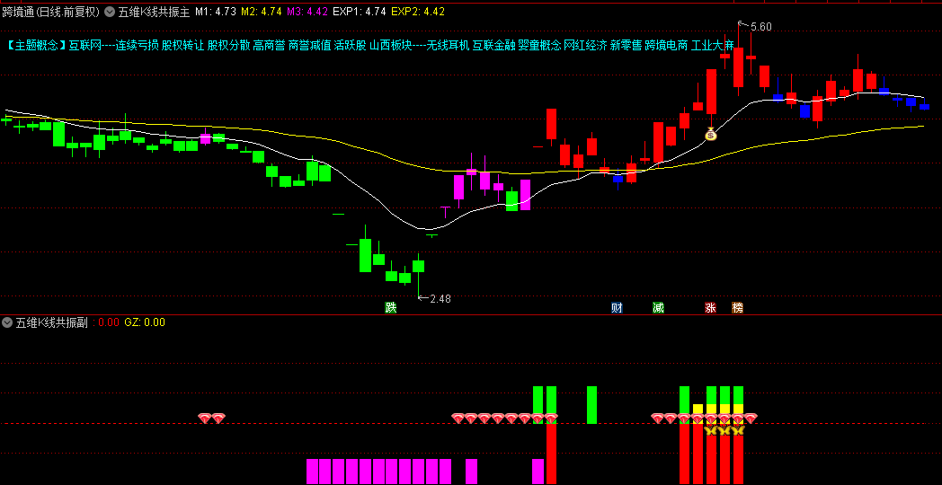 【五维K线共振】主图/副图/选股指标,趋势突破强度监测,五维共振黄金买点!