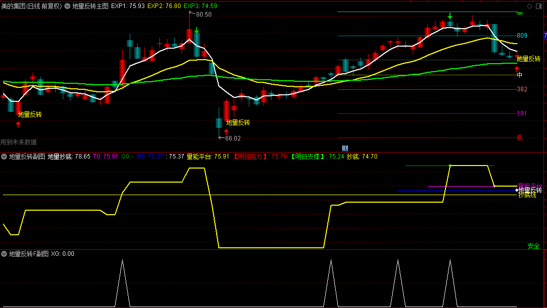 1)看"地量抄底"数值:≥95显示"高危"(红)要减仓,80-95显示"风险"(黄)需谨慎,50-80显示"安全"(绿)可持有,<50显示"空头"(蓝)宜观望;