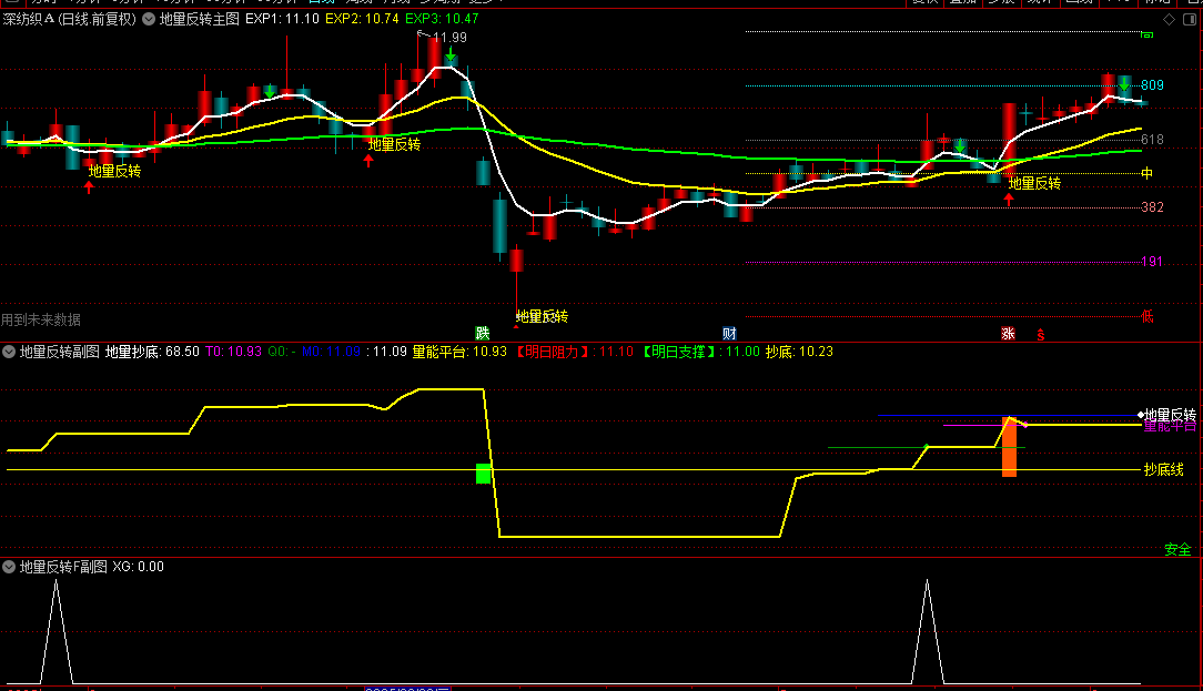 2)当股价突破紫色"量能**"且出现"地量反转"信号时买入;