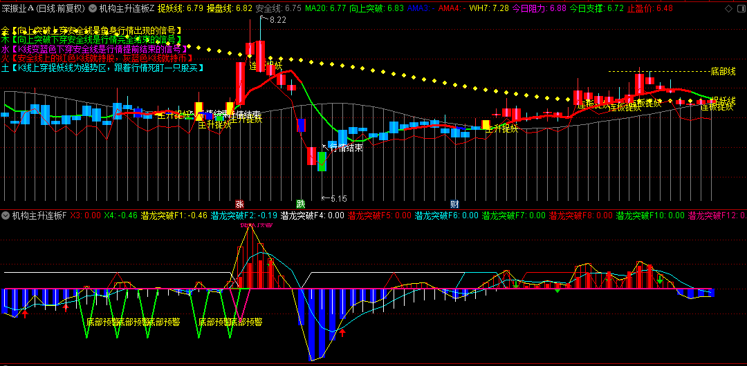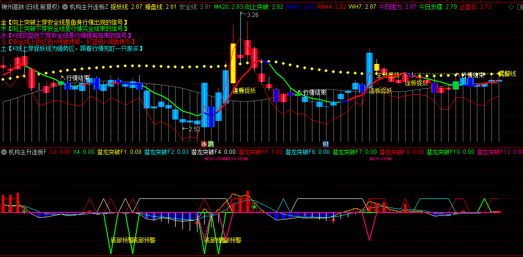 捉妖线:黄色圆点线,作为强弱分界线,股价上穿时提示"连板捉妖"信号。