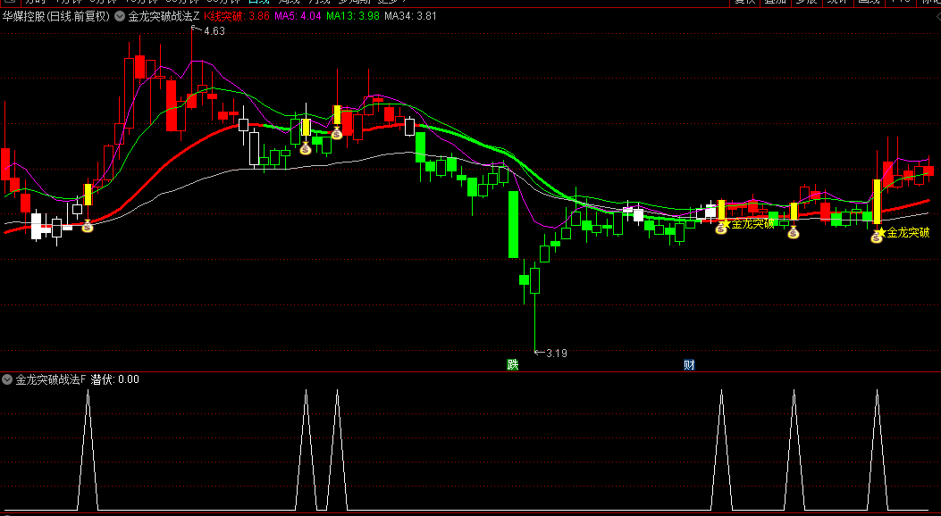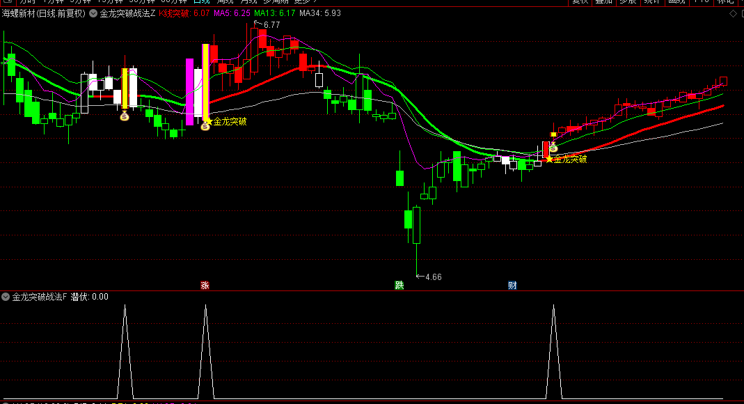 【金龙突破战法】主图/副图/选股指标,三种颜色K线标记多空状态,游资潜伏预警助你及时上车!