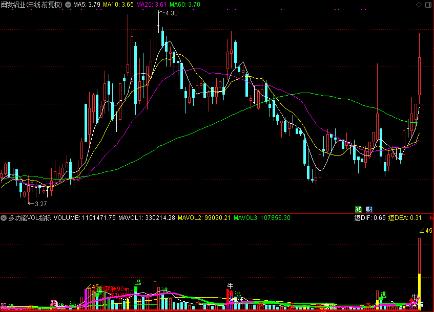 DRAWTEXT(牛,VOL*1.15,'牛'),COLORWHITE;