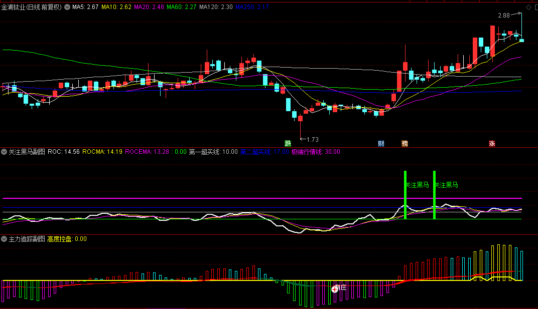 公式类型:2个副图指标:主力追踪、关注黑马(配选股指标)