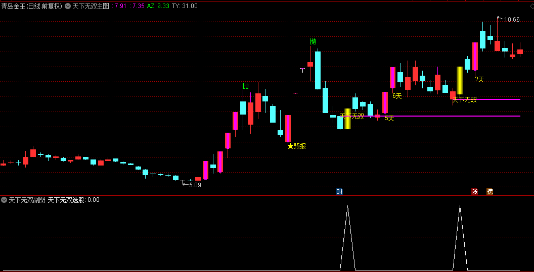 【天下无双】主图副图/选股指标,大阳攻击强信号,识别强击机会,信号少可以抓大牛!