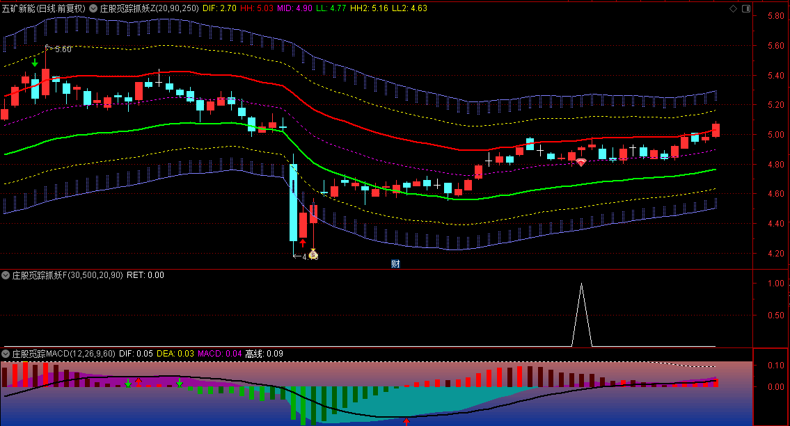 【庄股觅踪抓妖】主图/副图/选股指标,MACD金叉配合主图买入信号更可靠,三倍通道突破需特别关注!
