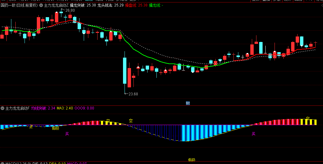 1.短线激进策略:主图出现"龙启动"标记+副图红柱放大时介入,选股器信号+分时强势可考虑打板。