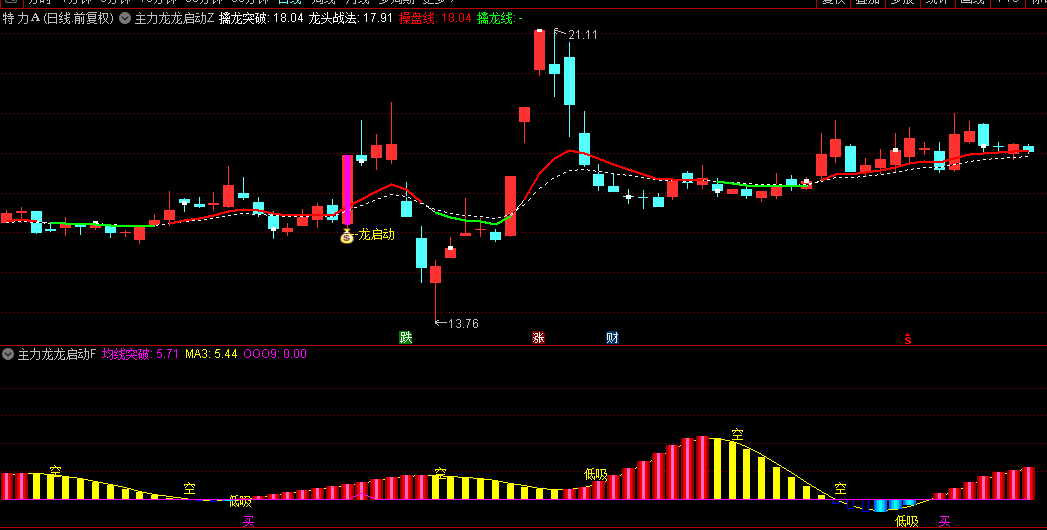 龙头战法线:动态调节的智能均线,白虚线显示资金博弈临界点。