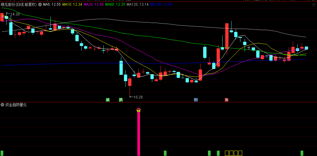 资金趋势量化附图...................注解:........单柱无出现趋势量化或资金量化文字出现...,不宜介入,.............说明该股不会越或处在下降通道,