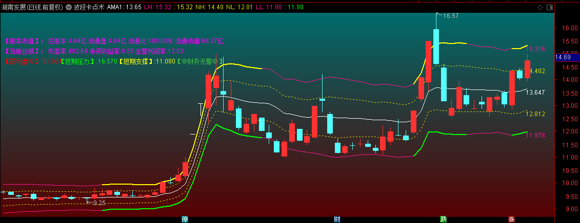 波段参考线(青色):提供短线交易支撑阻力参考。