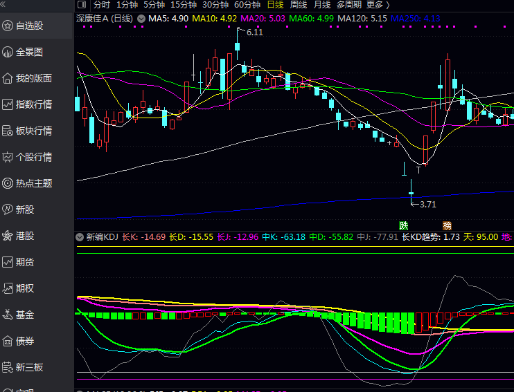1、J线是双刃剑: 其高敏感性带来领先信号的同时,也意味着假信号(噪音)更多。务必结合长周期趋势(长K、长D关系、长KD柱状图)、价格形态、成交量、关键支撑阻力位以及其他指标(如MACD, RSI, MA)进行综合判断和过滤。