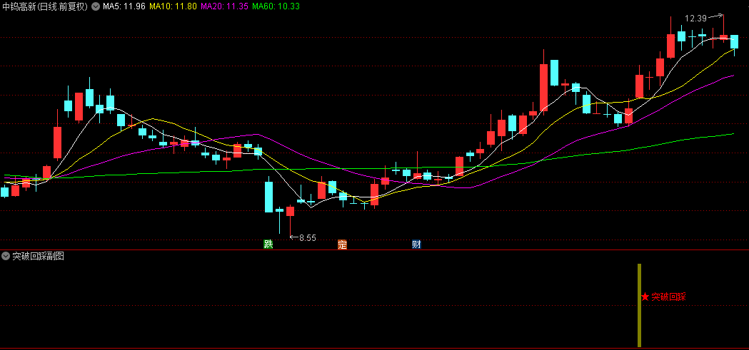 当指标出现"★突破回踩"信号时,建议结合以下条件提高胜率: