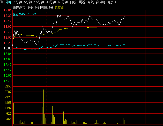 图中白色是分时线、黄色是均价线、青色是实时5日均线。