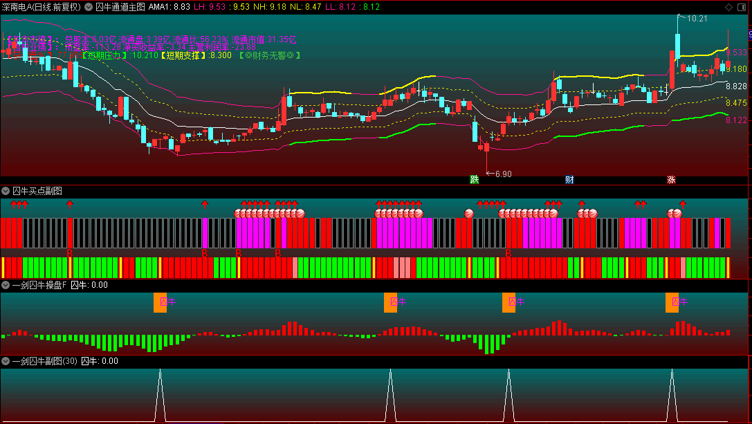 【囚牛通道】主图/副图/选股指标,通过通道约束+动能驱动+财务过滤三维模型,实现攻守兼备决策