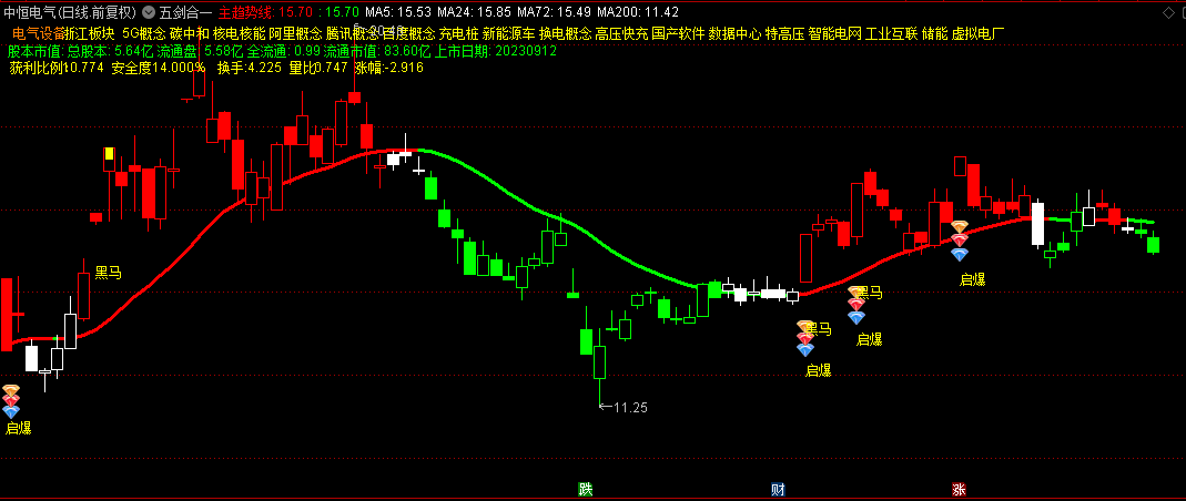 优化版【五剑合一】主图指标,有黑马和启爆信号的最好,会有一波拉升,送给大家!
