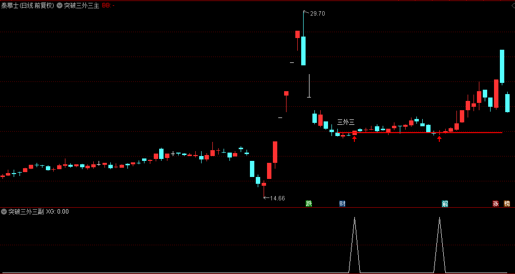 【突破三外三】主图/副图/选股指标,强势洗盘动作结束进场,经典的捉妖战法!