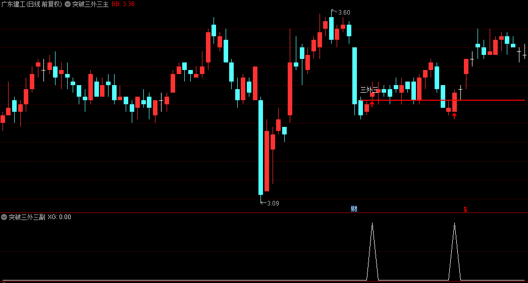 这套【突破三外三】战法由主图指标、副图指标和选股指标组成,形成三位一体的交易系统。
