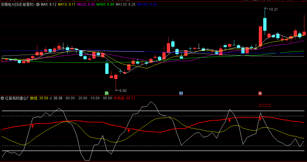 1.动态趋势分析:采用KDJ指标中的黄线K值和白线J值构建快速反应线,实时捕捉短期价格波动趋势。