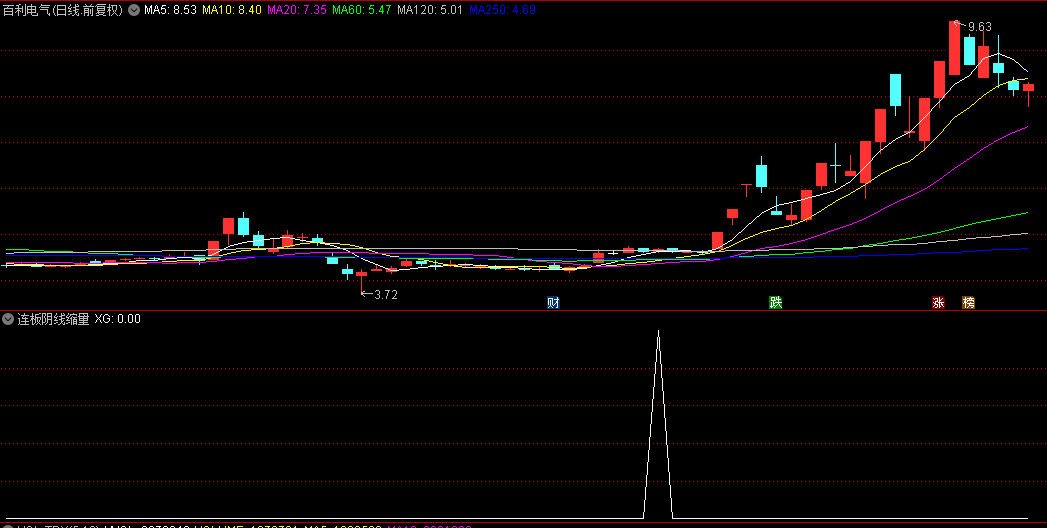 2.洗盘特征:连板后次日必须呈现"放量阳线-缩量阴线"组合,该形态中阴线成交量需显著低于前日阳线(至少30%缩量),这种反常的缩量回调暗示主力资金仍在控盘。