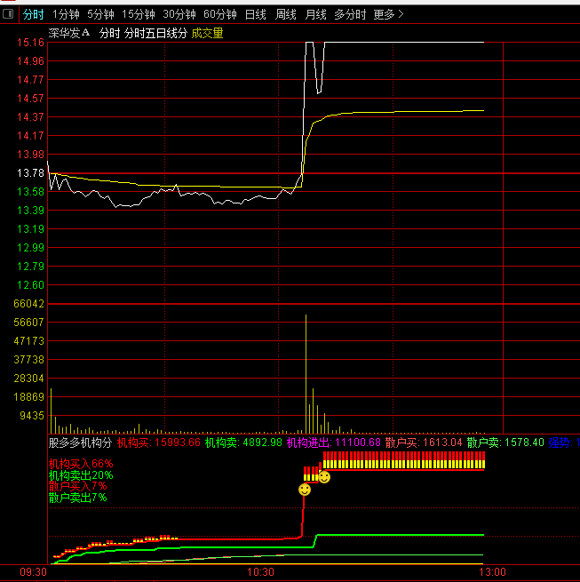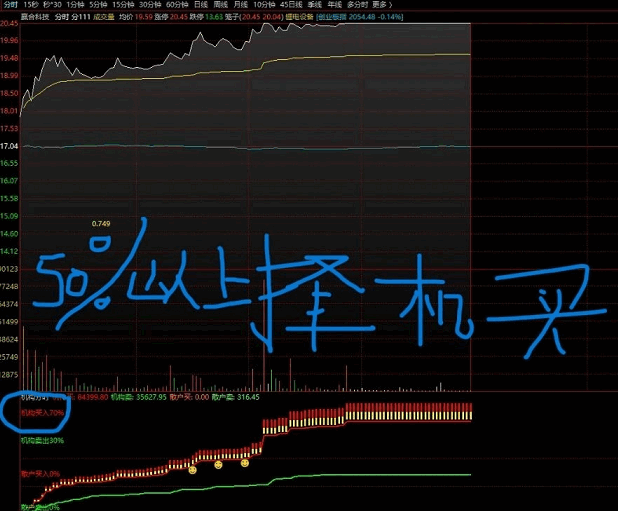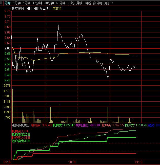 【股多多机构分时】分时副图指标,机构买入大于50%以上是强势上涨股,此时关注择机买进!