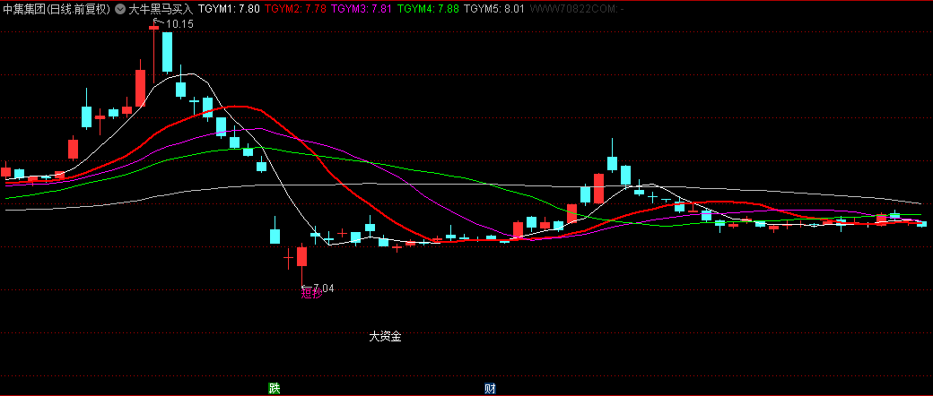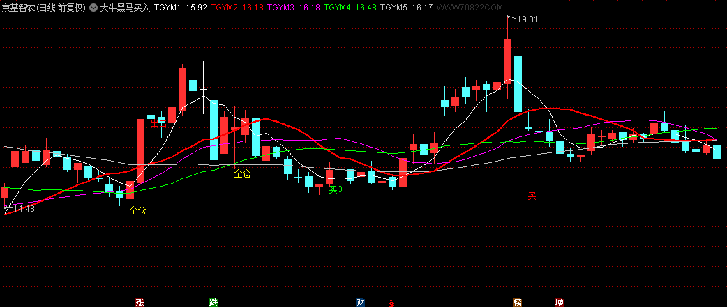 指标采用彩色均线系统与动态买卖提示相结合的方式,直观展示市场多空博弈状态。
