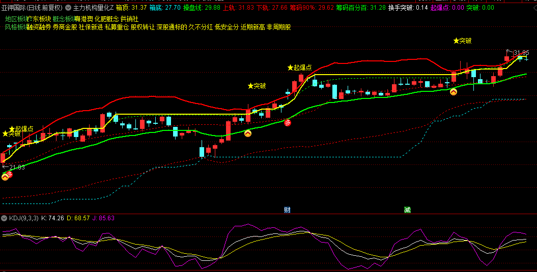 2.动态箱体通道:基于30交易日数据计算的箱体顶部/底部压力支撑位。