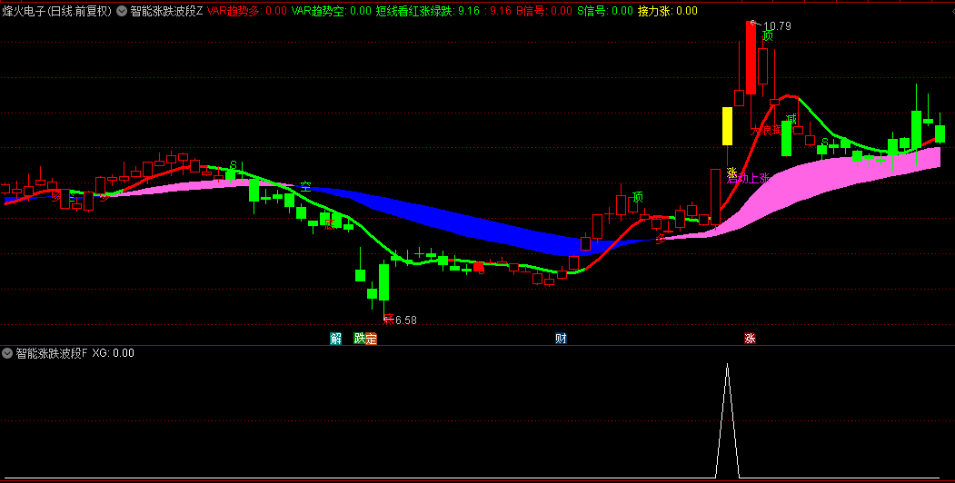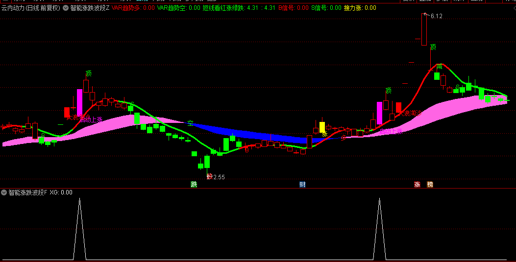 【智能涨跌波段】主图/副图/选股指标,自动红绿K线区分多空,大浪淘沙预警大级别趋势启动点