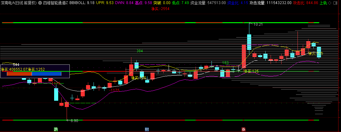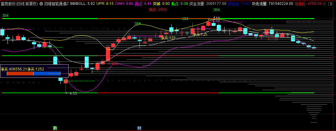 【四维智能通道系统】主图指标,独创资金攻击流量算法,自动识别关键突破位!