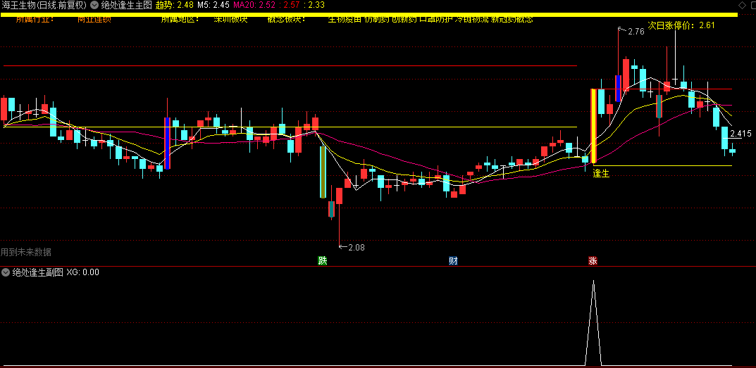 该指标的核心特征是当K线图中出现"逢生水平线"信号后,若股价随后出现回调并成功获得支撑,往往会产生一次具有操作价值的反弹行情。这一信号为投资者提供了重要的技术参考点。