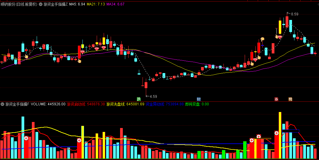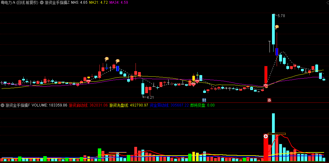游资启动线(5日均量线):红色线,监测短期资金异动。