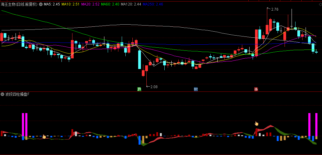 2.蓝柱出现:立即减仓,特别是下穿0轴后的首根蓝柱。