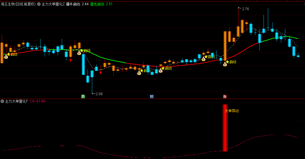 【主力大单量化启动】主图/副图/选股指标,量化潜伏回调结束,结合长期形态筛选启动点