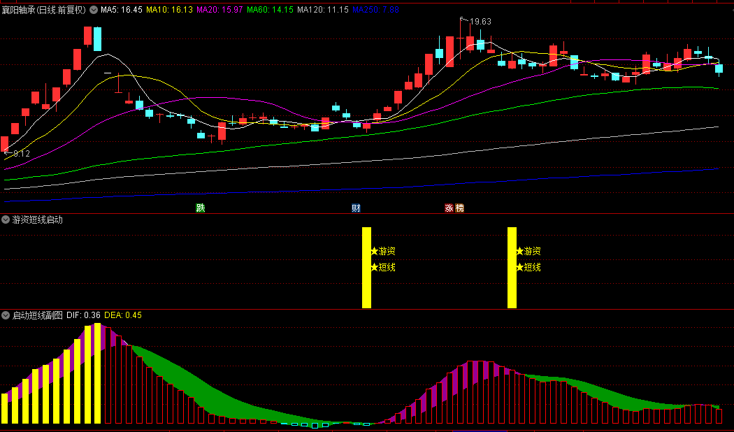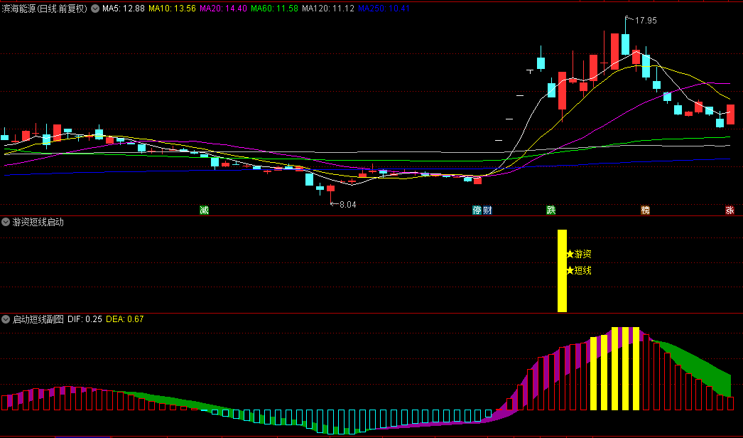 4.可视化提示:当检测到游资短线启动信号时,副图会显示醒目的黄色柱状线和"★游资"、"★短线"文字标签,直观提示交易机会。