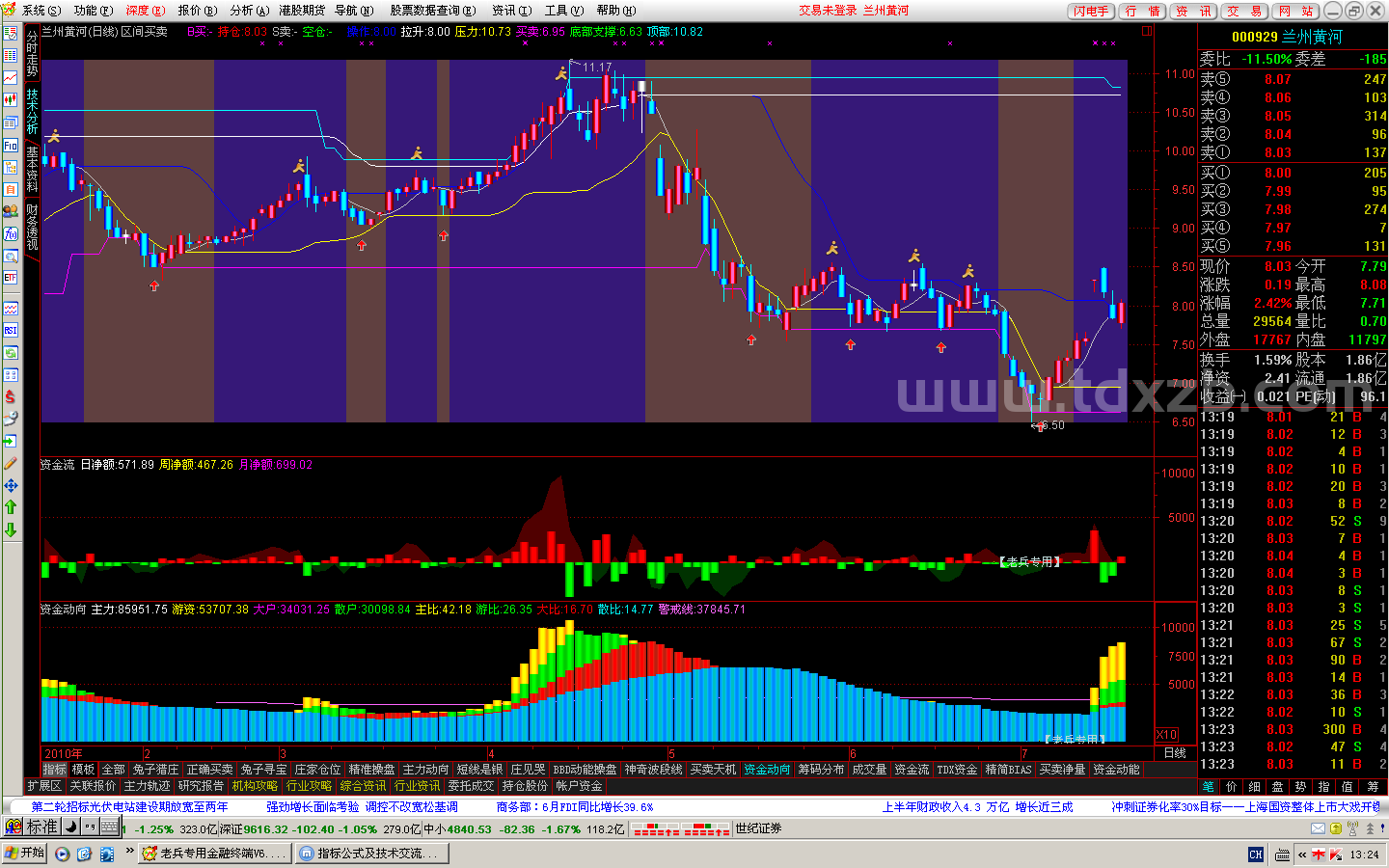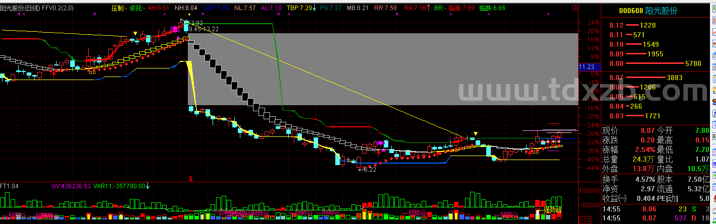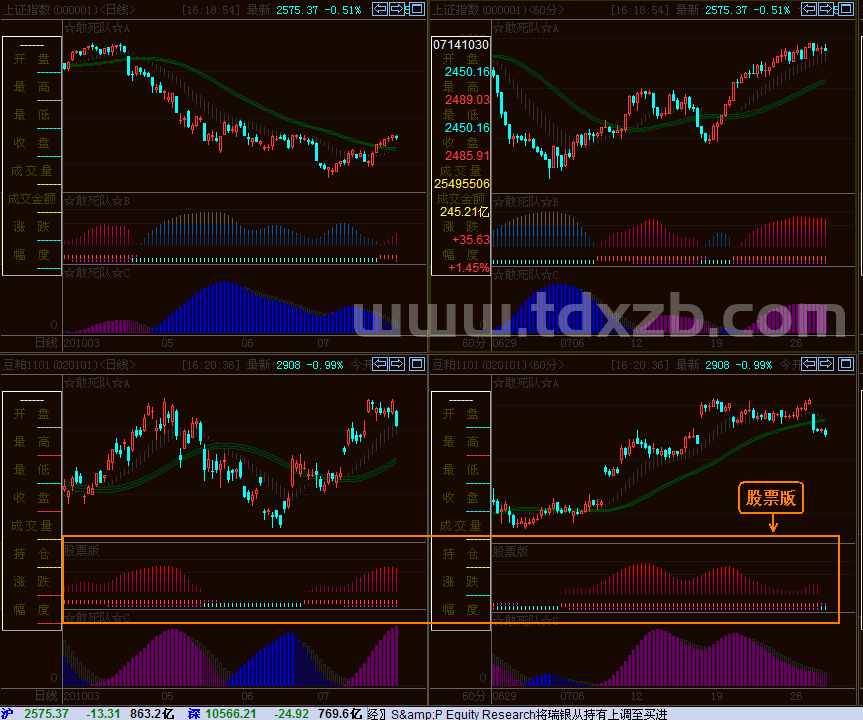 【132分时空破】分时主图指标,扫雷宝评分系统+大单动向分析,一直在用的精品分时指标!这是一款专为通达信软件设计的智能分时分析工具,整合了12项核心数据维度,通过可视化界面实时呈现个股关键信息。指标采用多色分区布局,白色显示基础信息,紫色标...