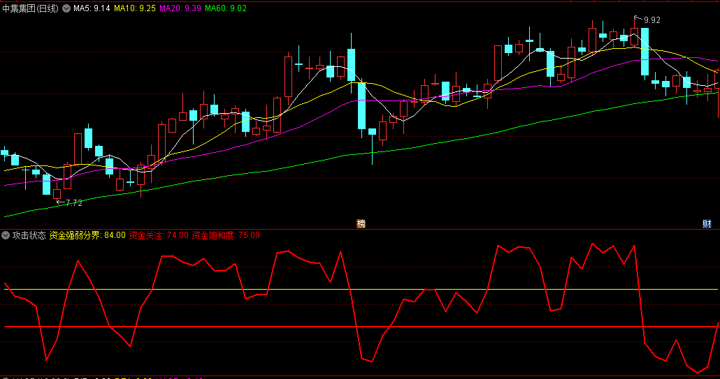 【红星照我去战斗】副图指标,当短长线形成黄金交叉,往往伴随重大行情启动!一、指标核心功能解析本指标通过独创性的三线趋势系统,为投资者构建了多维度的市场分析框架:1.趋势研判体系短线趋势线:反映市场短期波动节奏;中线趋势线:揭示中期行情走向;...