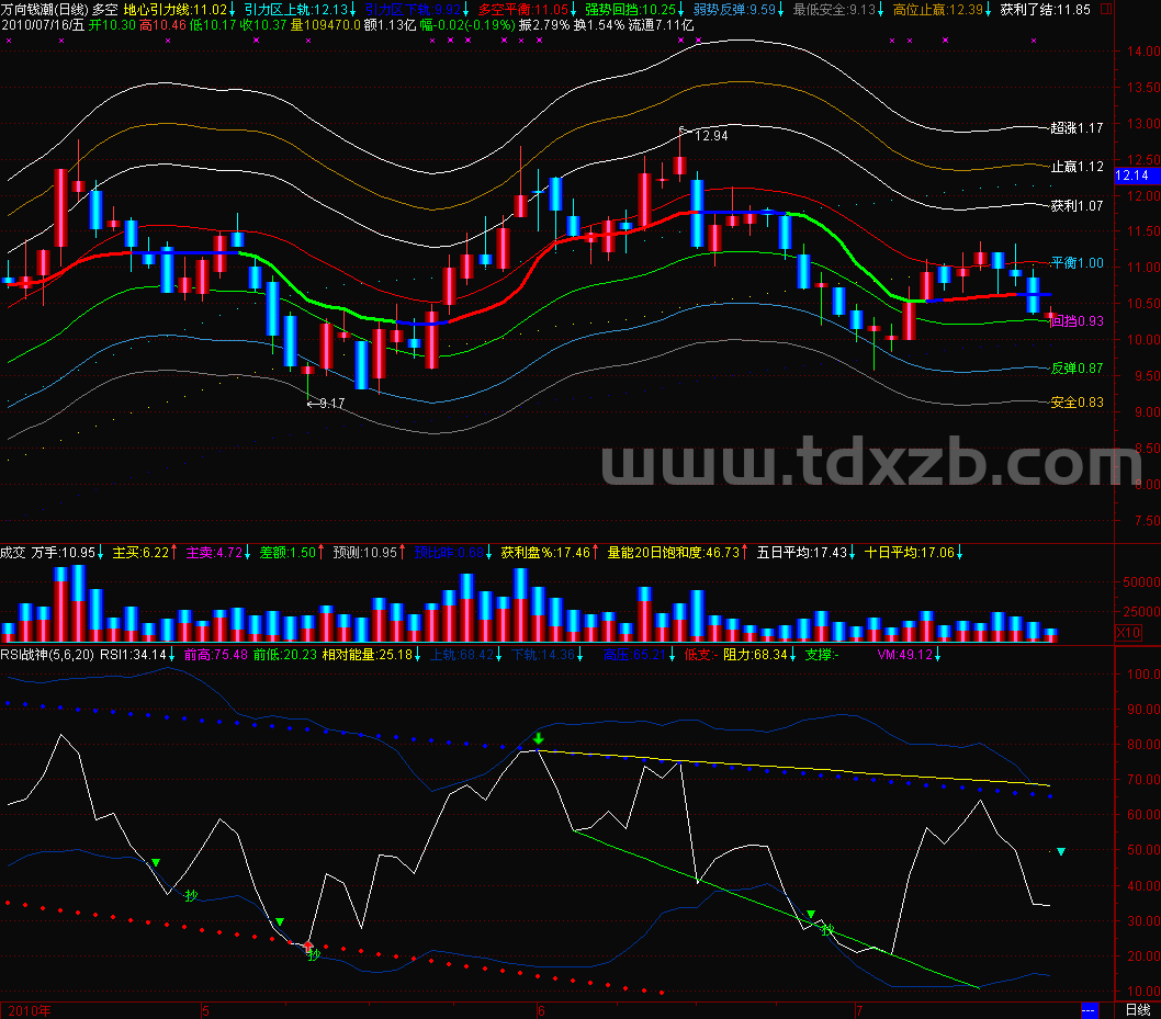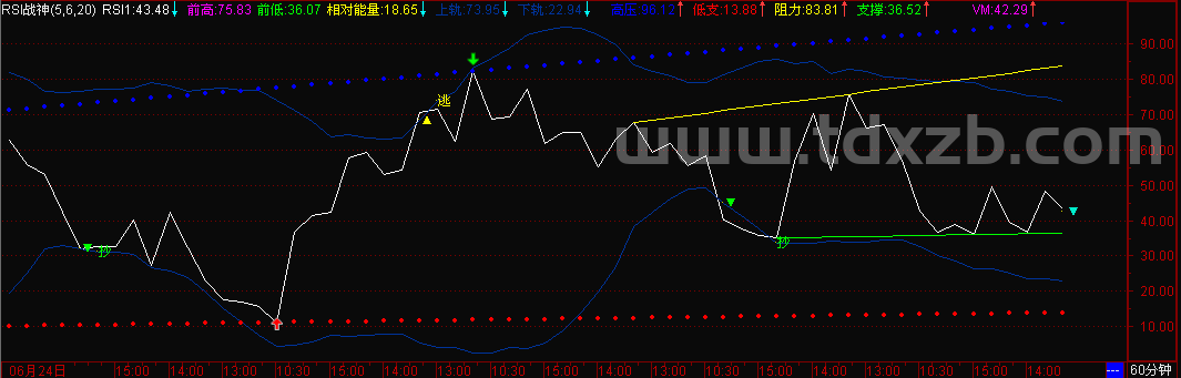 【短线量托通道】主图指标,量托信号配合价格突破,强势反弹初期即提示追击信号!