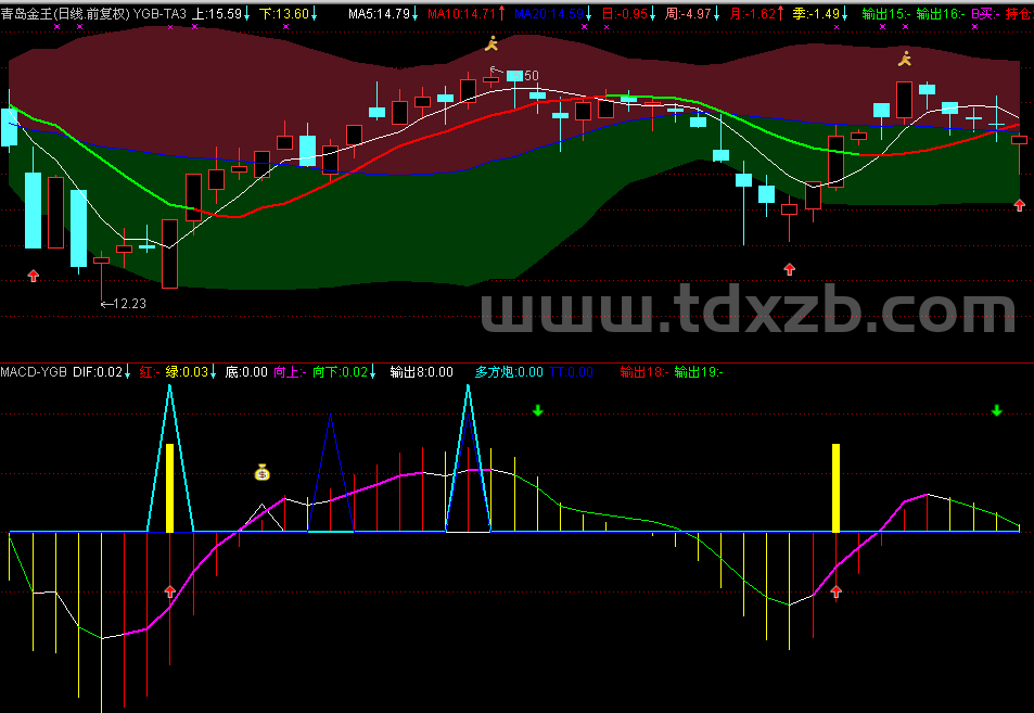 【短线量托通道】主图指标,量托信号配合价格突破,强势反弹初期即提示追击信号!1.均线系统5日均线(MA1):白色线,反映短期趋势。30日均线(MA2):绿色线,反映中期趋势。10日均价线(MAA):基于价格中轴的指数平均线。上升均线标记:当...