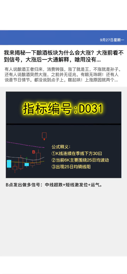 通达信【运满万金】副图指标,抓妖股有它就足够了,抓妖股必备指标1. 价格与成交量共振 指标首先通过价格和成交量的变化来判断股票的潜在爆发点。当股价涨幅超过一定阈值,同时成交量显著放大,形成“价量齐升”的共振信号时,指标...