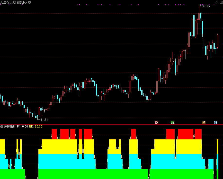 通达信缠论波浪回踩主图指标,标记假阴真阳、真阴假阳、红三兵、黑三兵、回踩关注信号,把握波浪运行中的操作机会!一、概述缠论波浪回踩主图指标是一种结合缠论与波浪理论的技术分析工具,旨在帮助投资者更准确地把握市场中的操作机会。该指标通过不同颜色的...