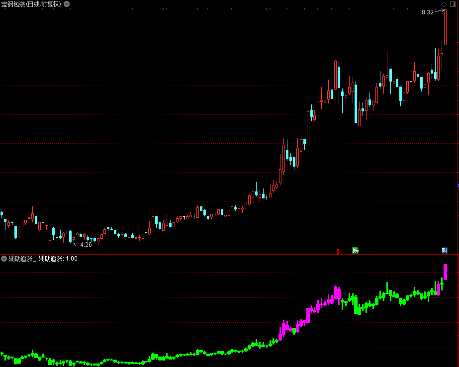〖顶级操盘〗主图指标 突破平台 一飞冲天 紫柱出现连板概率极大 通达信 源码突破平台,一飞冲天,此主图与四副图共振,且当日突破平台,下面三幅图均为紫色柱,连板概率极大,此仅提供一下主图....