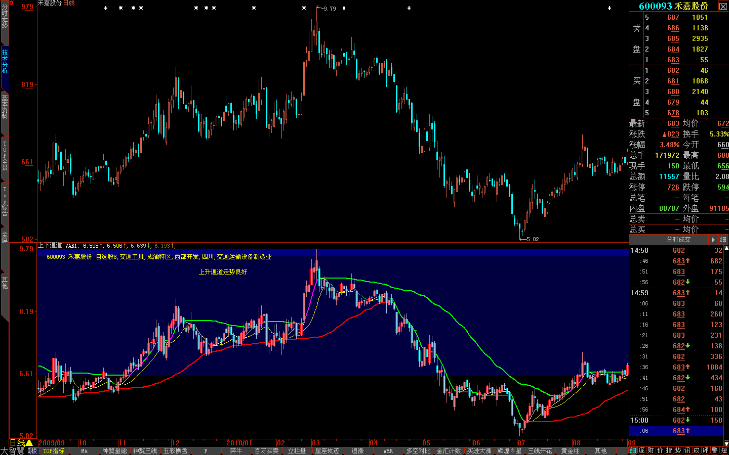 【上涨加速入场】主图/副图/选股指标,紫色粗线标记上涨加速信号,识别上涨加速的入场时机!主图指标功能1.趋势线显示:绿色线:5日均线;红色线:10日均线。2.买入信号:当出现"进"字提示和黄色箭头时,表示符合买入条件;黄...