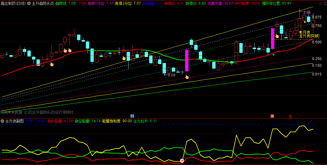 【主力成本】主图/副图/选股指标,主升浪行情在上穿主力成本线后开始,量价突破信号!指标简介:主升浪行情都是在股价上穿"主力成本线"后开始的。主力成本线、长命线以和强命线,是一个将获利盘为9%、27%和81%的成本,分别分...